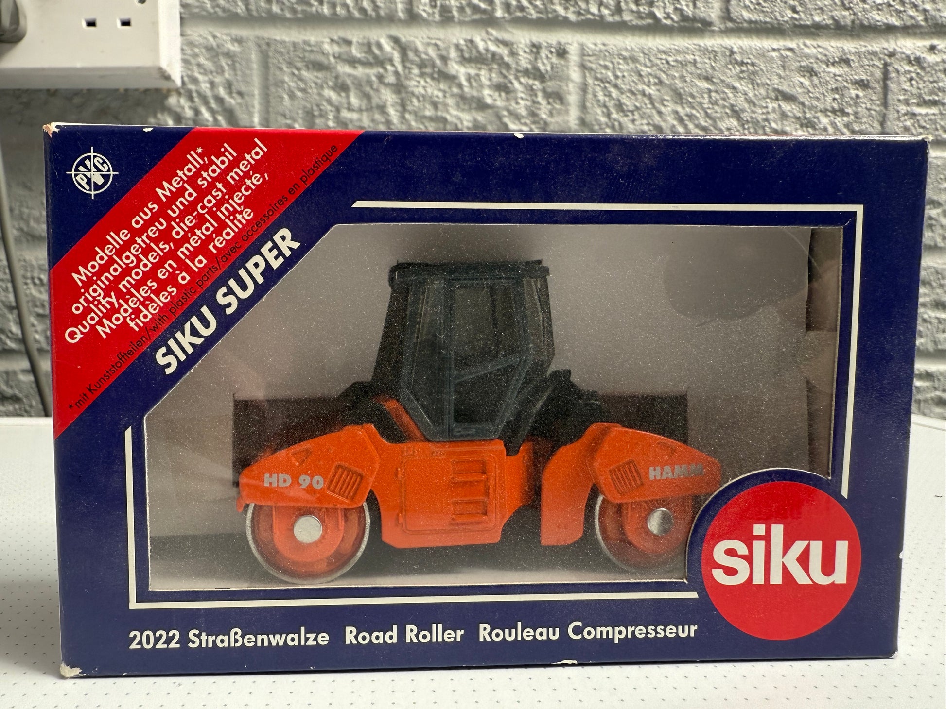 The 2022 Road Roller HAMM HD90 by Siku is a detailed 1:50 scale die-cast model, expertly replicating the real-life HAMM HD90 road roller. Known for its durability and performance in construction, this model features intricate detailing of the roller's structure, with a functional design that mimics the real-world equipment. Perfect for collectors and construction model enthusiasts, this model showcases the excellent craftsmanship that Siku is known for.