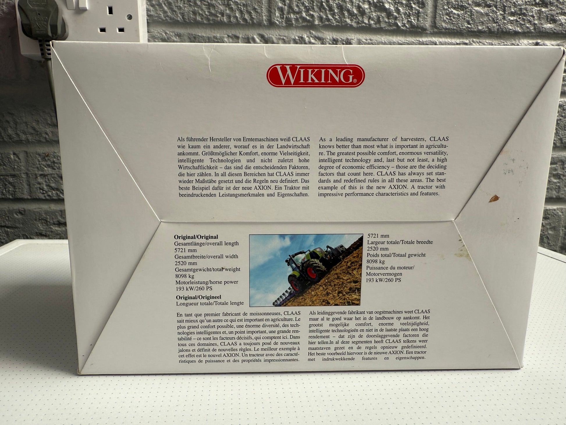 Model Condition: The Class Axion 850 tractor is in excellent condition. It shows no visible wear, scratches, or damage, with all the details and paintwork fully intact. The model appears to have been well cared for.